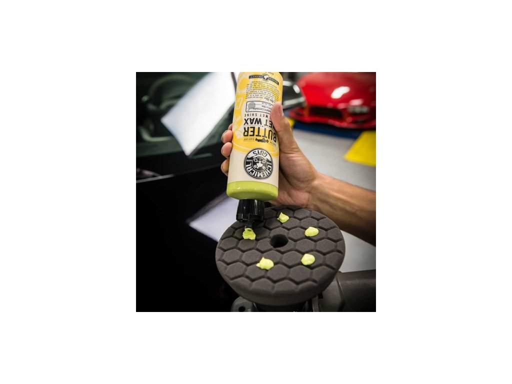 - šestiúhelníkové komůrky s drážkami absorbují leštící pastu, kterou během práce rovnoměrně a postupně uvolňují. Výsledkem je nižší spotřeba pasty a její omezený rozstřik mimo ošetřovanou plochu. Maximálně šetří spotřebu přípravků.