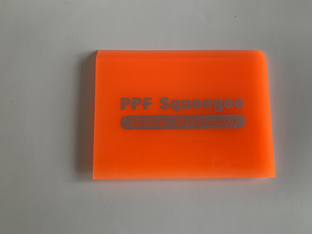 Oranžová, středně tvrdá, silikonová stěrka , vyrobená pro instalci všech ochranných fólií PPF. Zabraňuje poškrábání povrchu. (10cm x 7,5cm)